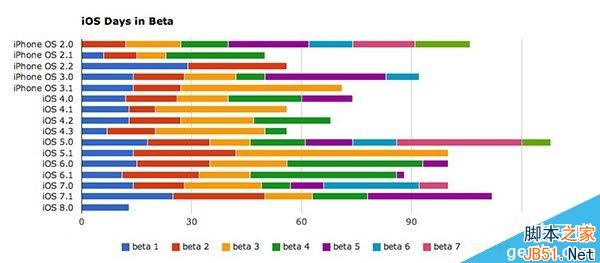 根据数据统计,iOS 7 Beta 2,在Beta 1发布14天后发布。而iOS 6.0 Beta 2在Beta 1发布15天后发布。