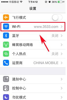 1)首先,点击【设置】进入,选择【Wi-Fi】功能栏进入。(如下图所示)
