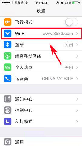 1)首先,点击【设置】进入,选择【Wi-Fi】功能栏进入。(如下图所示)
