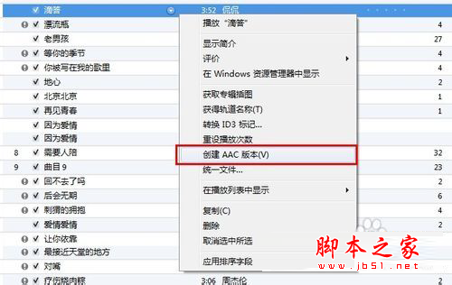 右击歌曲,选择“创建ACC版本”,点击“创建ACC版本”后,开始转换歌曲,转换后,在 iTunes音乐里会出现同样文件名,但时长在40秒以内的文件(我下载个歌曲不较短,是在酷狗里下载的铃声,所以创建ACC版本后,还是那时间)。