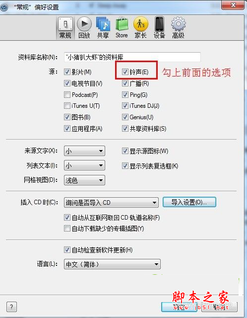 第六步,在iTunes设置里将铃声划勾。