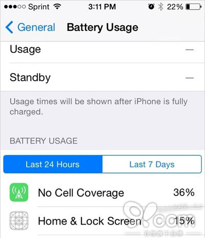 应用程序的电池使用情况:应用程序的电池使用情况已包括在设置菜单,让用户知道自己的手机电量使用情况,如无信号的使用量、Home和锁屏状态的使用量。