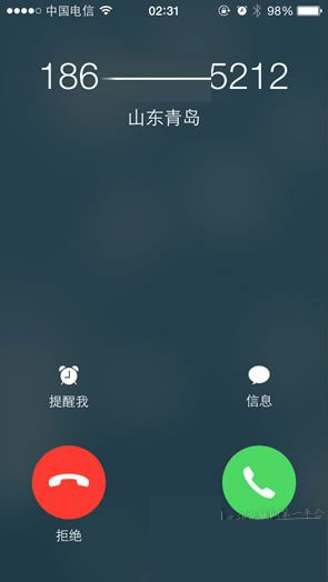 来电归属:这应该是大家期待已久的功能,但苹果的来电归属地有点不一样,如果一个号码已经存在电话本里,它会认为用户已经认识这个人,不显示归属地。只有没保存到电话本的陌生来电才显示归属地。