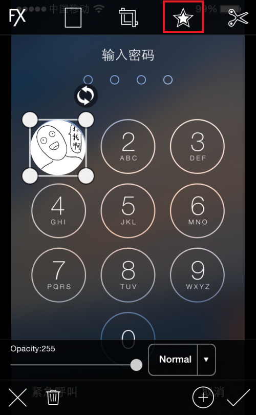 然后,给自己的密码解锁界面截图一张,同时按住Home和锁屏键就可以了噢~当然,记得顺便准备好你接下来要插在数字键区域的图