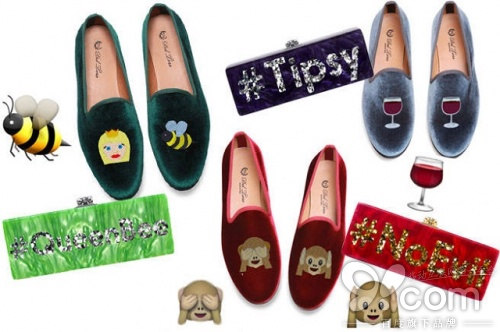 也不放过 Emoji,电商 Moda Oprendi 在今年 4 月 8 号卖起了 Del Toro 的 Emoji 鞋子和 Edie Parker 的 Emoji 包包。