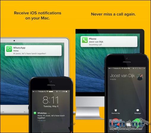 Notifyr可对多种包括电话来电,手机短信,以及相关应用信息在内的消息进行推送。当手机有消息进入时,通过Notifyr即可将消息推送至相应的与其匹配的Mac上,出现在Mac的右下角显示屏处。iPhone一旦通过Notifyr与相应的Mac匹配成功,用户无需再次开启Notifyr,如果连接消失在能够进行消息推送的范围内Notifyr可以自动重连。用户也不用过于担心电能消耗问题,Notifyr通过低功耗蓝牙进行消息推送的方式极大的减少了电能的消耗,为iPhone与Mac长时间连接提供了续航保障,另外需要提醒大家的是Notifyr应用需要iPhone 4S及2011 MacBook Air以上的设备上才可以进行安装,如果想要了解下电脑端如何收发iPhone来电短信的朋友们可以通过这个插件来操作。