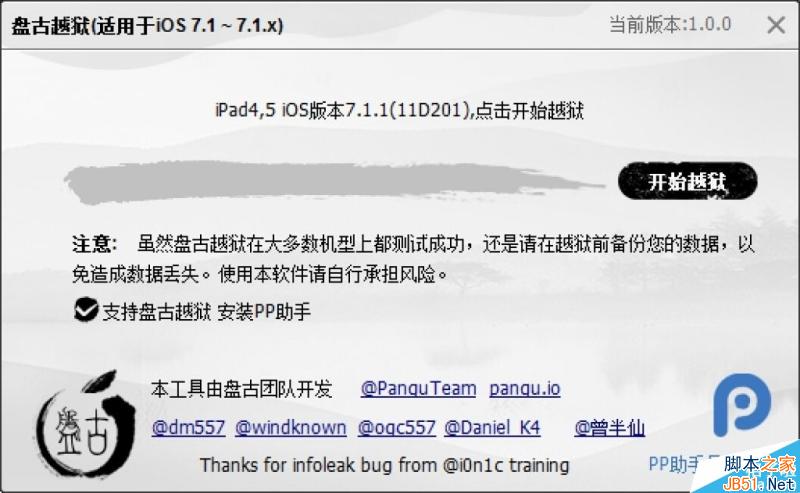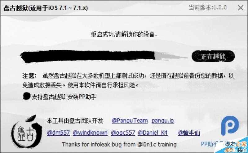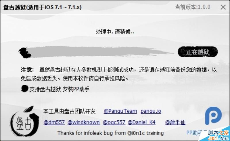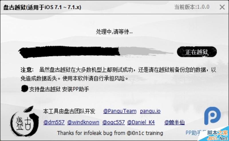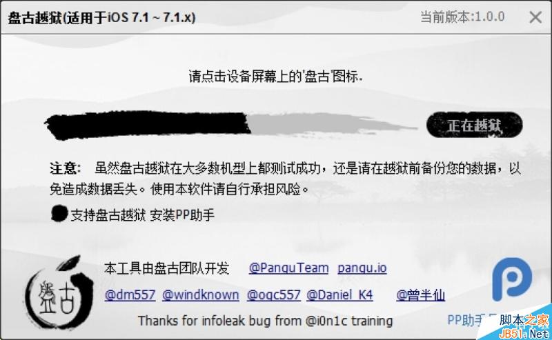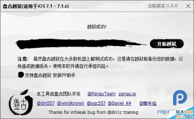 iOS7.1.1完美越狱发布。本次越狱适用于iOS7.1-iOS7.1.1。本次越狱由国人团队PanguTeam 开发。可谓是盘古开天辟地头一回。感谢大神们的辛勤劳动。