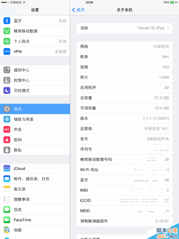1.首先确保你的系统是iOS7.1-iOS7.1.1(在“设置”-“通用”-关于本机中查看),如果不是,请先到iTunes中升级。