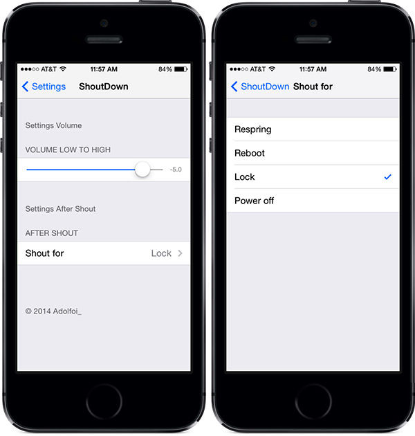 音量调得越高,你就要喊得越大声。当然使用之前,你要前往 Activator 的设置面板来为 ShoutDown 分配一个动作。另外,呼喊需要英文来完成(respring, reboot, power off, 或者是 lock)。