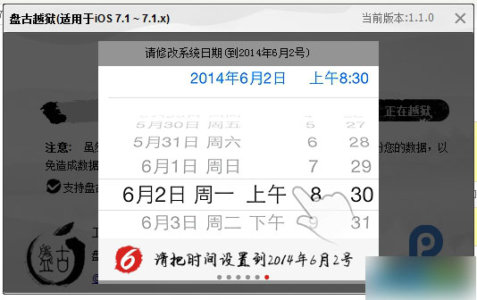 第二步、出现如下画面时,请讲手机日期修改为:2014年6月2日,设置方法如下