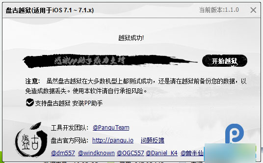 第一步、打开盘古越狱点击“开始越狱”