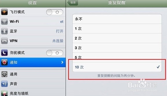 4.在信息的通知设置界面下面有一个重复提醒,点进去