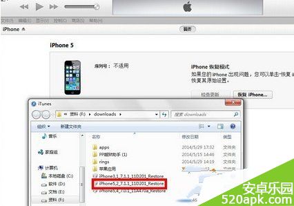 3、按住键盘上的shift键+iTunes上的“恢复”,选择固件;