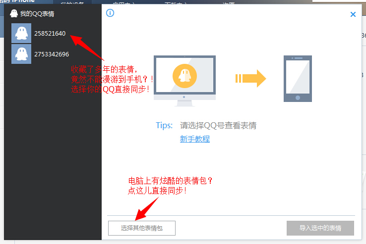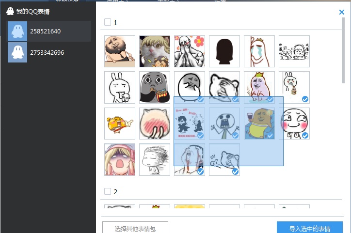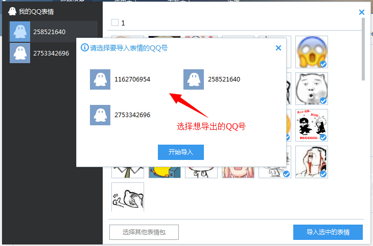 选择QQ号,选择好你爱的表情就可以一键导入啦~
