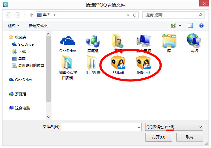 选择已下载的.eif表情文件,选取想要的表情一键导入~