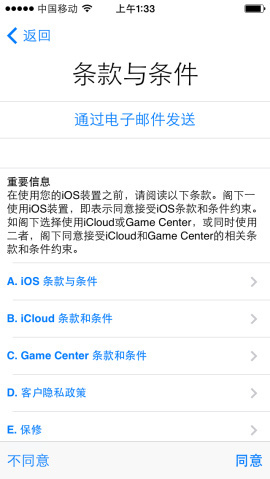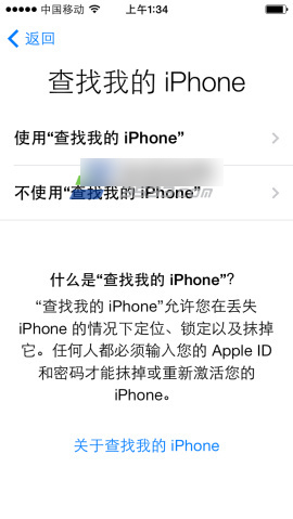 4)创建好Apple ID后,点击同意条款与条件,对于“查找我的iphone”大家可以根据自己的需要选择。(如下图所示)