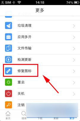 1)首先在3533下载个pp助手安装并打开,在主面板处点击【更多】(如下图)