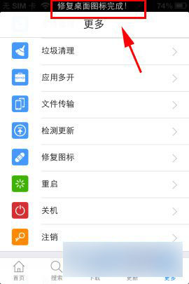 3)最后它会提示【修复桌面图标中】,稍微等下就可见【修复桌面图标完成】(如下图)