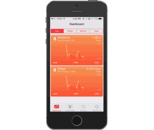 - Health 应用程式支援 iPhone 5s 的 M7 处理器,记录步数和距离