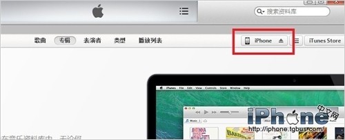 1.链接iPhone5s至电脑。打开iTunes,点击右上角设备图标。