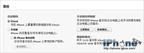 iTunes在每次连接设备并进行第一次同步的时候,会自动进行备份。也就是说,如果你的设备一直连着电脑反复进行同步,只有第一次同步会自动进行备份。在手动备份和恢复这里,可以选择是否还要备份,以及恢复备份(恢复备份的时候会选择具体恢复的时间点)。