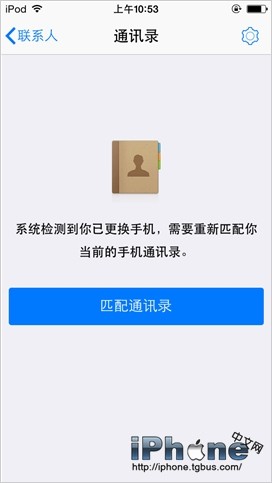 2.进入通讯录界面,点击“匹配通讯录”,进入后找到“备份与恢复”。