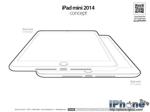 我们还不知道苹果是否会把新一代iPad mini命名为iPad mini 3,不过我们可以期待这款设备将会在今年秋季发布。如果苹果继续延续新款iPhone在9月发布的规律,那么新一代iPad mini的发布时间很可能就是10月份。最后,我们一起来欣赏Hajek带来此iPad mini 3概念图的设计样稿: