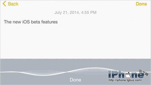 今天的iOS 8 Beta 4中,苹果修改了内建的听写系统工作方式。在之前的iOS版本中,软件听写文字,要等待用户说完全部命令,将语音发送到苹果的服务器进行分析,然后返回转换的文字。Siri曾经也是这样工作的,在今天的iOS 8 Beta 4中,可以实时听写,不再需要等待用户说完话。下面就一起来看看吧