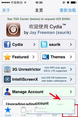1)首先,打开“Cydia”进入,点击“管理”进行“源添加”。