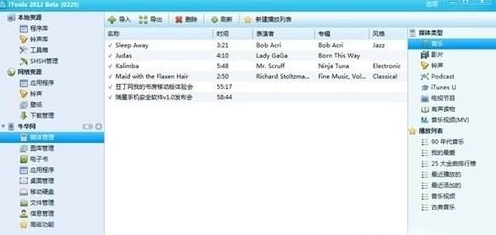 3、接着我们点击媒体管理之后,选择右侧栏的铃声,点击导入,选择你刚才下载的铃声就可以导入手机了。 (请注意,导入那个按钮在itools窗口的中间栏) 。
