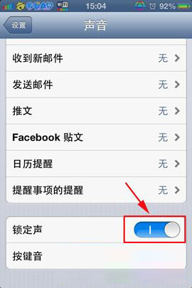 2)手指向下滑动,在倒数第二行有个锁定声,把锁定声打开。