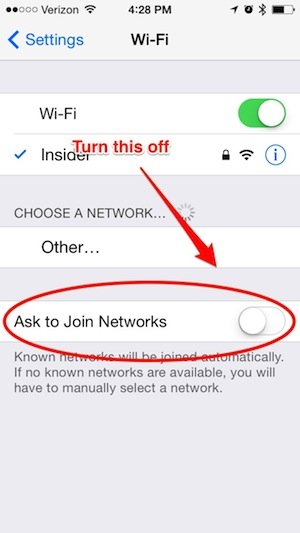 你的iPhone是否会经常问你是否希望加入附近的Wi-Fi网络呢?如果问过,你可以将这一功能关闭。据赛德科介绍,无论手机何时自动进行一些操作,如搜索附近的Wi-Fi或是更新应用,它都会拖累手机的运行速度。你只要将它关闭即可,操作步骤如下:设置>Wi-Fi>询问是否加入网络。将滑动条切换至关闭即可。