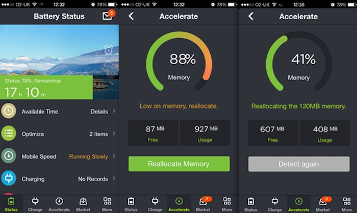 一旦手机运行速度缓慢,这可能是由于内存问题。据美国科技网站Macworld报道,这款名为“Battery Doctor”的应用可以向用户显示手机的运行速度有多快。如果手机运行速度放缓,你可以点击“Reallocate Memory”按钮,iPhone就会重新分配内存资源。Macworld的团队宣称,无论iPhone的速度何时开始放缓,用户都应该首先试着用这款应用来解决问题。