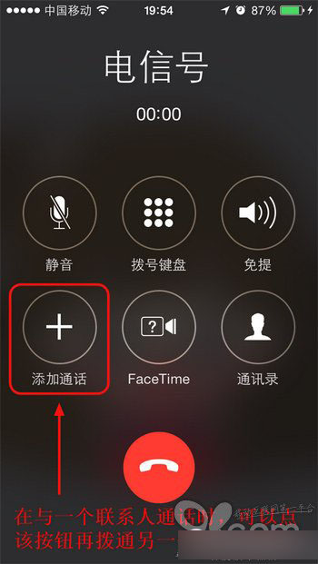 在iOS8中,当正在与一个联系人通话时,另一个联系人打进电话来是可以同时通话的,而且也可以在与一个联系人通话时再拨通另一个人的电话,实现三方同时通话