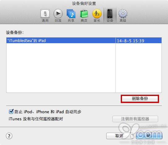 如何使用 iTunes 删除备份文件