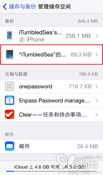 如何在 iOS 的 iCloud 设置面板删除备份文件