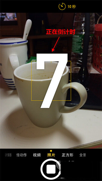 按下屏幕下方的拍照按钮或按机身侧面的音量键即可启动定时拍摄。此时在屏幕上可以看到倒计时的提示。计时完成即可完成拍摄。