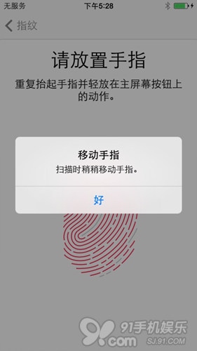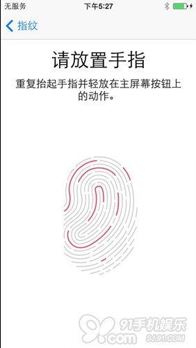 3.5开始设置指纹,将手指放在Home键上