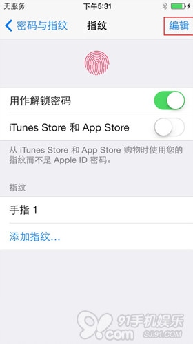 3.7 点击继续,可以对录好的指纹进行设置,也可以选择继续添加指纹,如果需要删除之前设置的指纹,可以点击右上角的编辑按钮