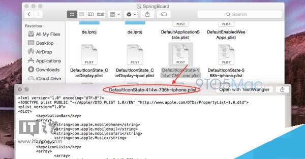 通过下图可以看到,iOS 8的Springboard应用中包含了这种全新的分辨率。Springboard是指iPhone Home的主屏幕,也就是俗称的桌面。这份文件定义了图标在主屏幕的摆放位置。这份文件首次出现在本月初发布的Xcode 6 beta 5中,而在昨天发布的Xcode 6 beta 6中,这份文件依然存在。文件中提到的分辨率为414 x 736。iPhone SDK会自动处理硬件分辨率,实现Retina分辨率时会让414 x 736翻倍,也就是828 x 1472。