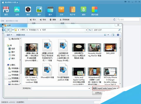 2.将电脑本地的电影导入,注意影片的格式iPhone上要能支持才行。如果不支持,就先将视频格式进行转换。