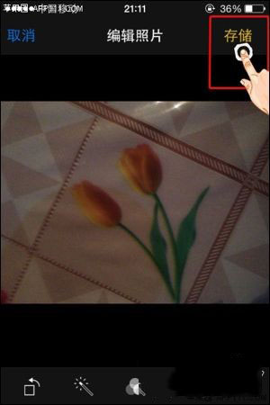 4、最后点击右上角的“存储”按钮,即可保存旋转后的照片。