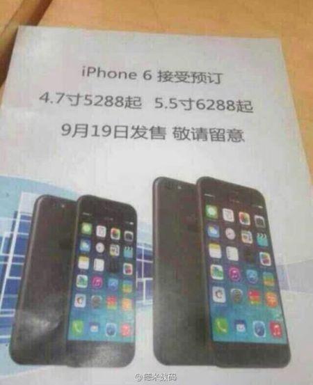 随着备受瞩目的iPhone 6即将发布,国内运营商也开始了各种预热宣传攻势。日前,就在北京移动启动疑似iPhone 6的预约之际,微博上还曝光了联通版本的销售价格,据称4.7英寸和5.5英寸两个版本的价格为5288元和6288元,将于9月19日正式发售。
