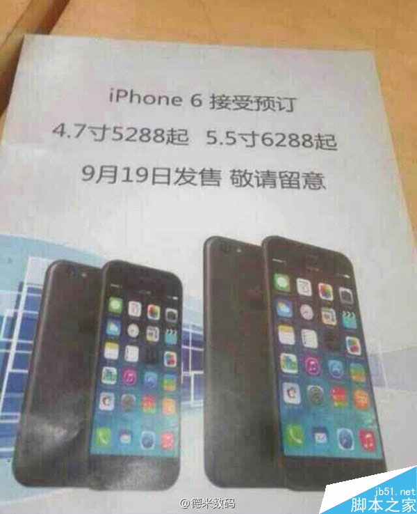中国联通即将启动iPhone6合约机预约,9月19日发售,4.7英寸/5.5英寸两个版本售价分别为5288元起和6288元起。