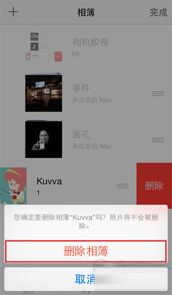 第四步:接下来你会看到熟悉的确认删除面板,点击「删除相簿」即可将该相簿删除。