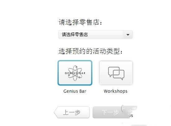 2)选择临近的Apple Store零售店,并勾选Genius Bar天才吧