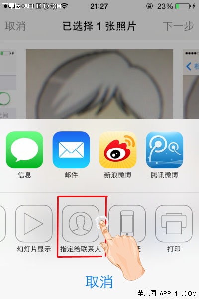 第二步,点击左下角的“分享”按钮,点击右上角的“下一步”。 第二步,在下方的分享选项中选择“指定给联系人”。