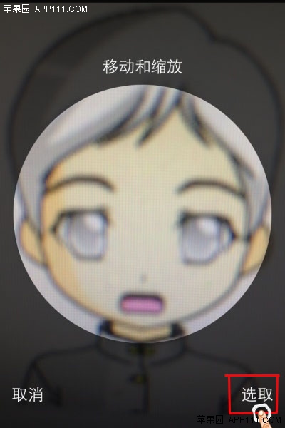 第四步,弹出通讯录页面后,选择相应的联系人即可,选取合适的头像位置,点击“选取”即可。
