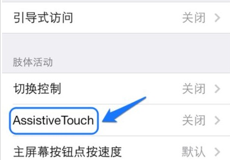 3、在辅助功能的底部有一个“AssistiveTouch”选项,点击打开。