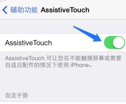 4、随后点击打开AssistiveTouch 的开关,打开以后就可以看到在主屏上会出现一个白色的小圆点了。